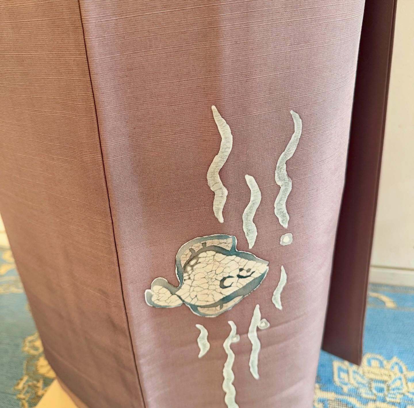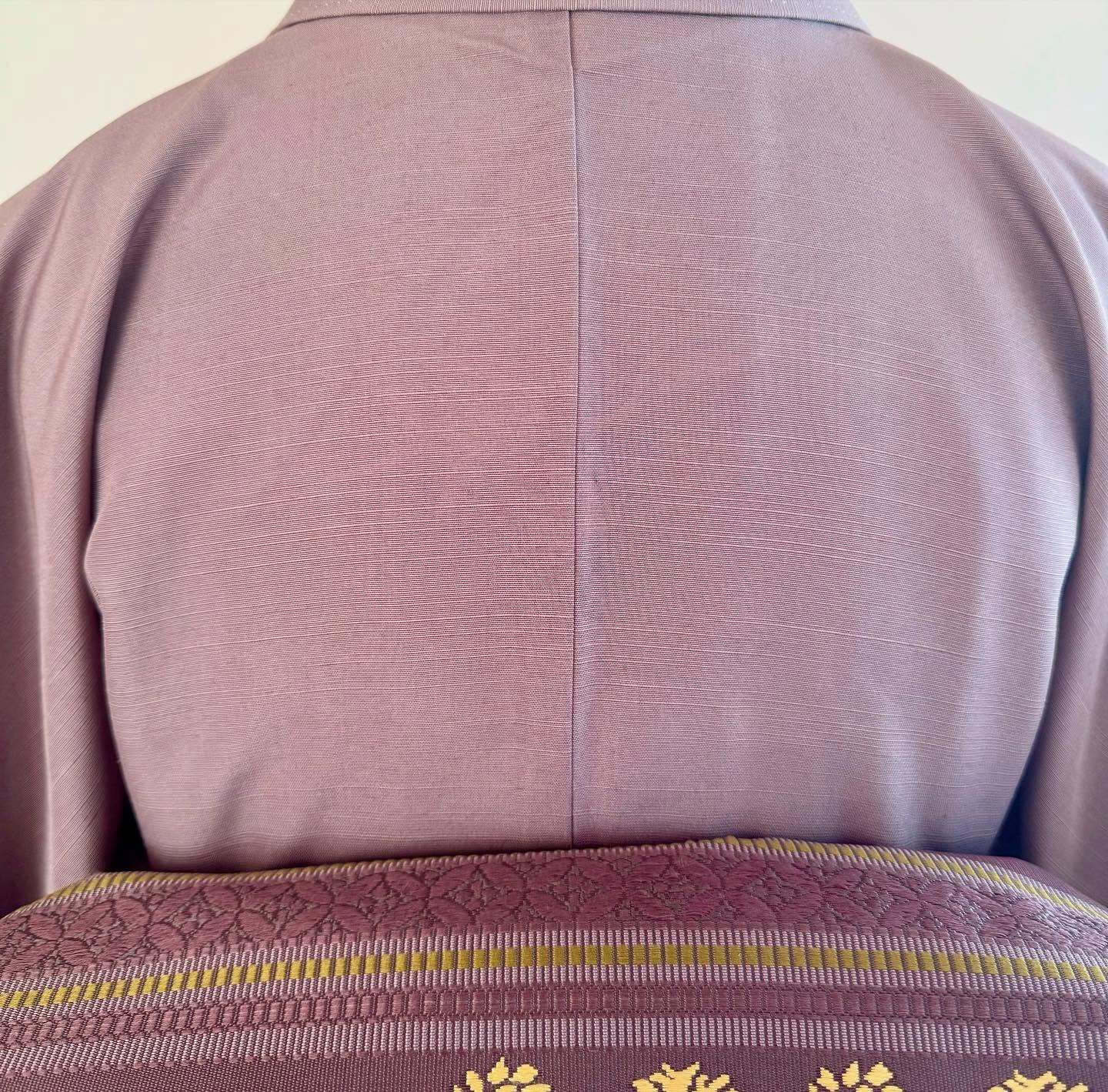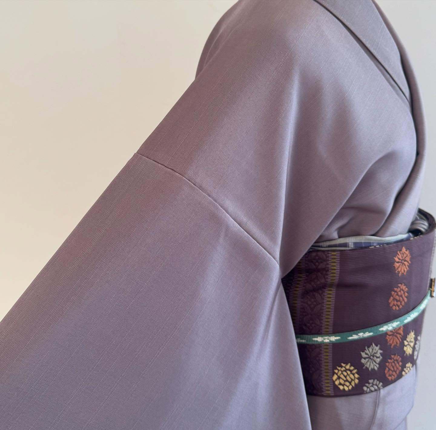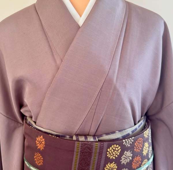 和色大辞典から紫鼠色に近いまったりした控えめな色で座っていると上半身は無地、立ち姿は裾が見えて変化がある楽しい柄です。