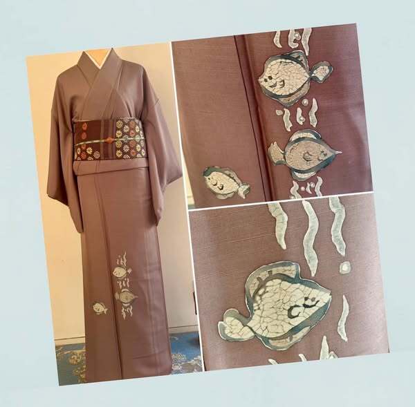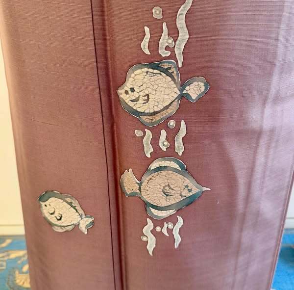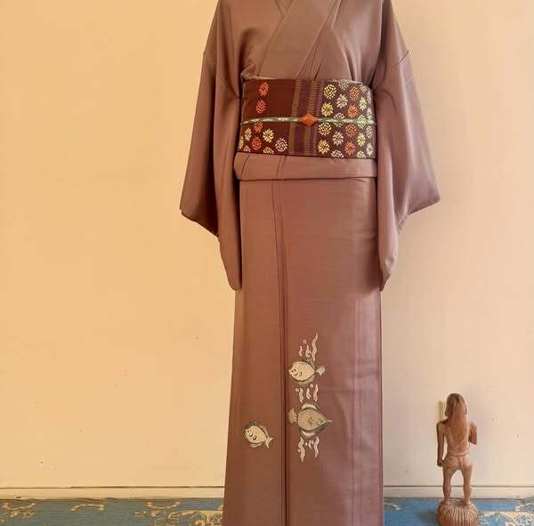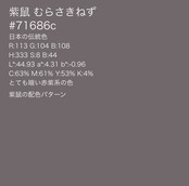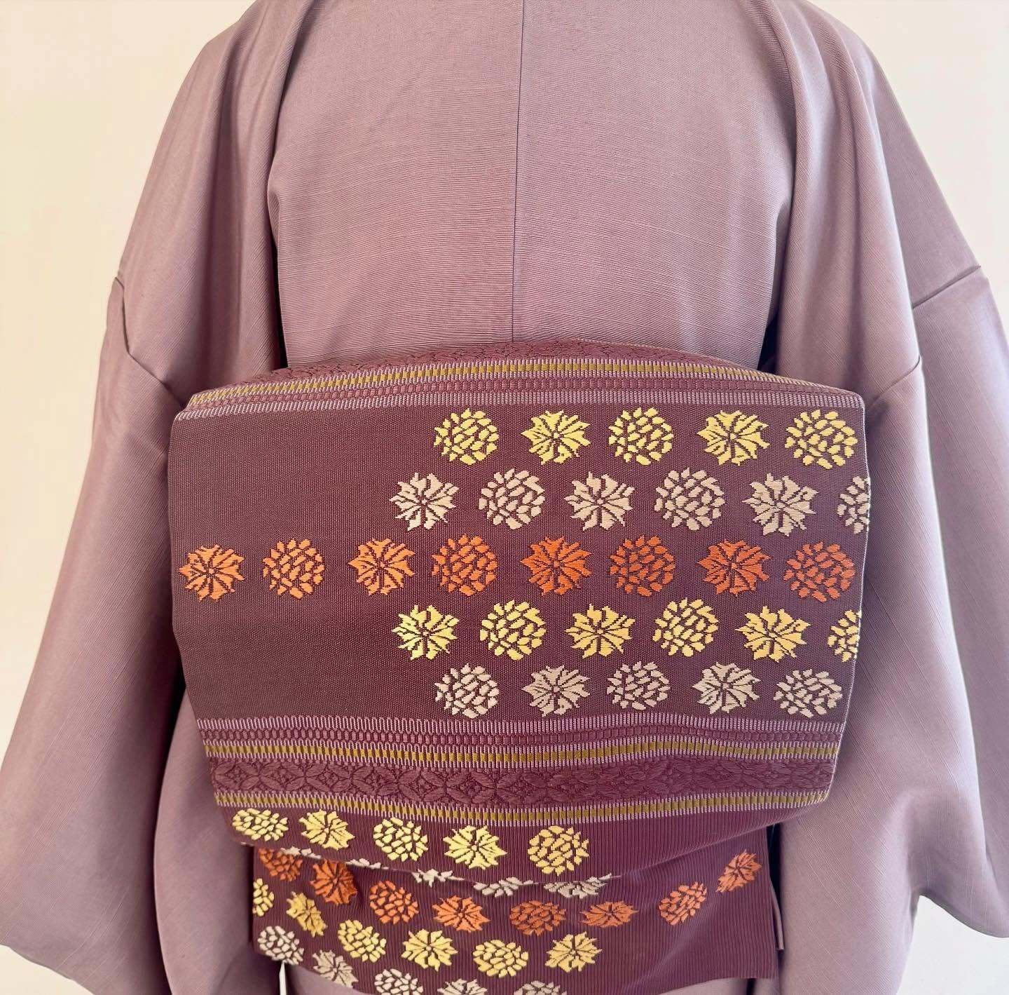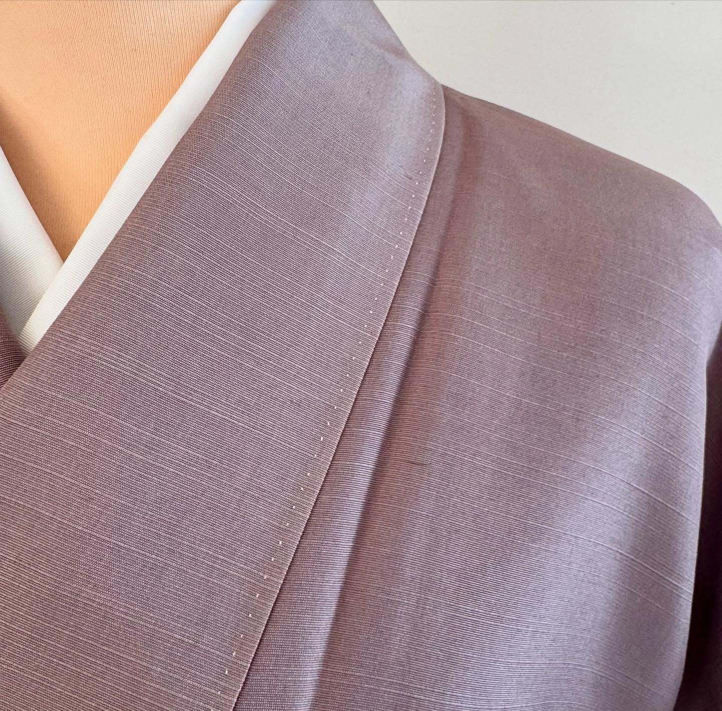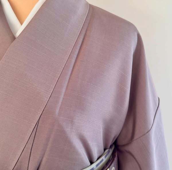 和色大辞典から紫鼠色に近いまったりした控えめな色で座っていると上半身は無地、立ち姿は裾が見えて変化がある楽しい柄です。