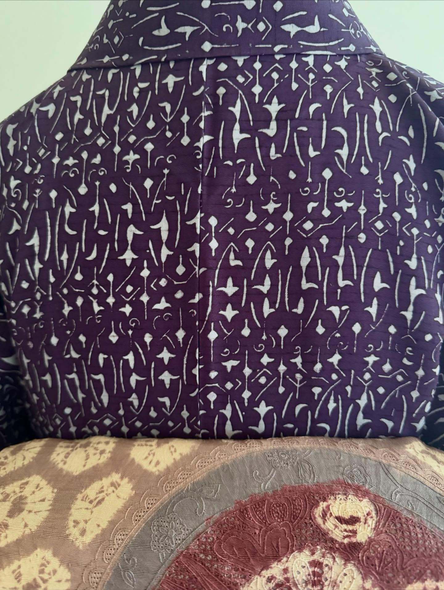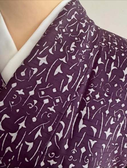 紫の幾何学染紬着物