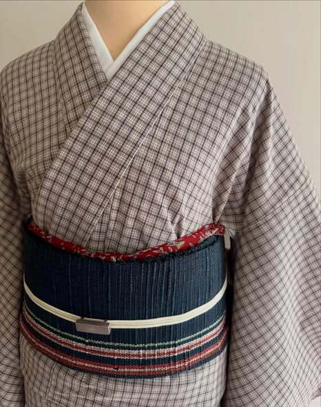 ざっくりとした織の八寸名古屋帯を合わせてみました。