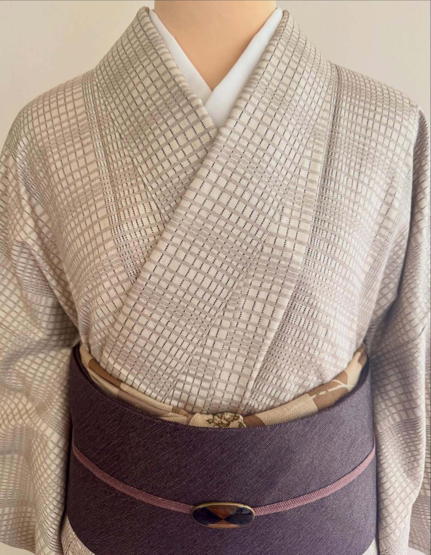 格子状に膨れ織な感触の楽しい着物が入荷しましたのでご紹介します。