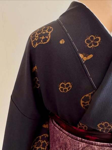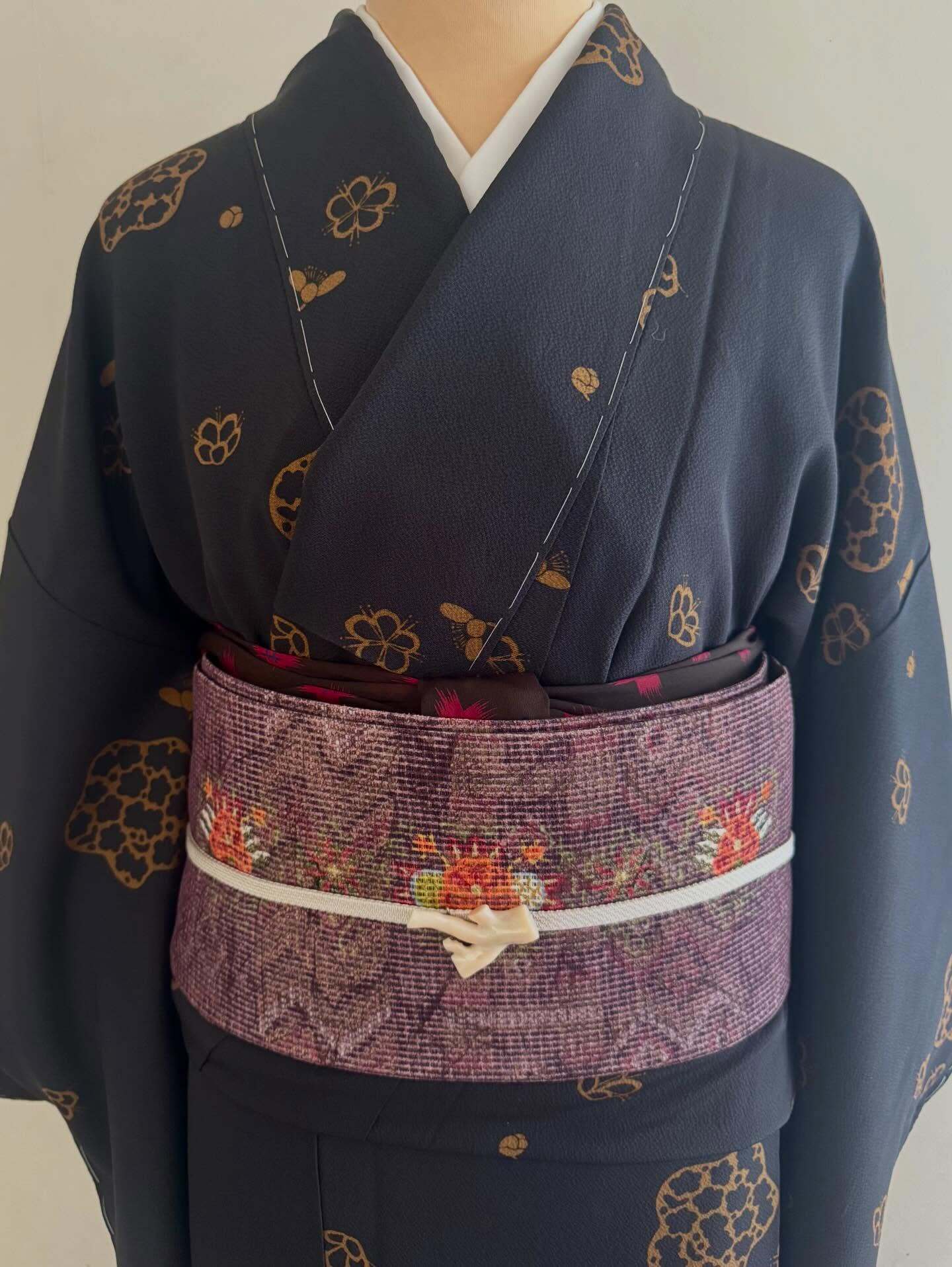 黒×茶の抑えた配色で描かれた、表情豊かな梅尽くしの小紋着物が入荷しましたのでご紹介します。