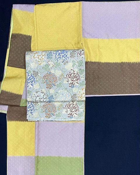 川島織物の菊の袋帯を秋のコーデに乗せてみました。