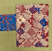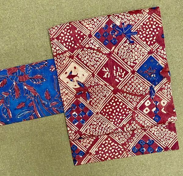 茶系の色の組み合わせがよく見られるバティックですが、こちらは深く落ち着いた弁柄色と醸し出された藍の色が古い布がお好きな方の琴線に触れる事と思います。