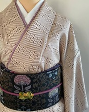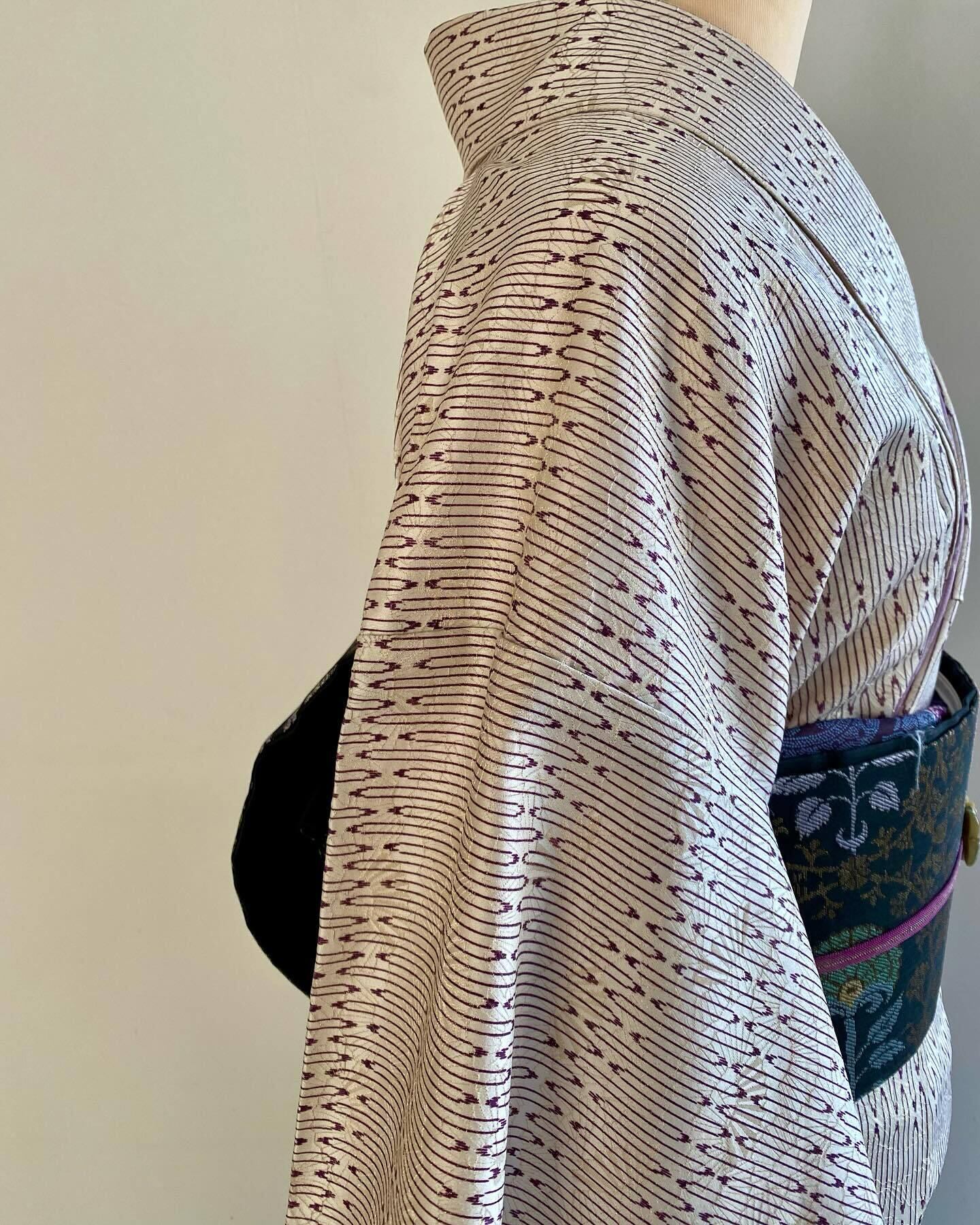 ちょっとしたお集まりや観劇に華美にならず さげなく華やかさを演出するのに金通しの小紋着物は如何でしょう。