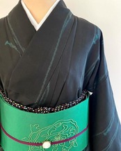 緑色塩瀬にループ刺繍の名古屋帯を合わせみました。