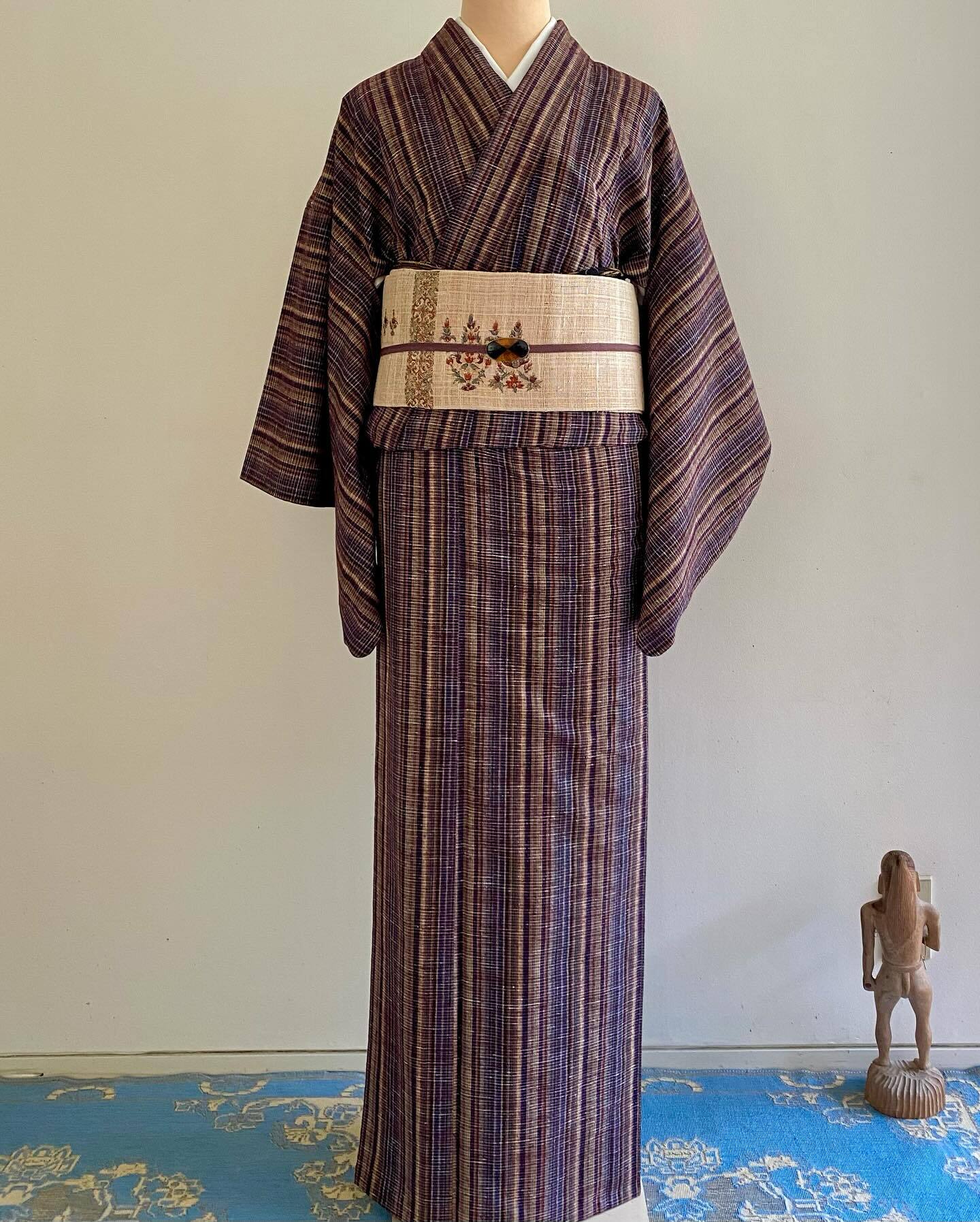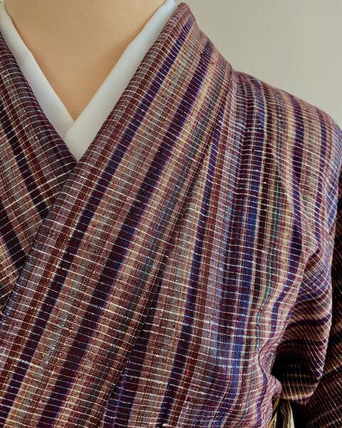 パッと見は紫と茶色のコンビネーションの縞ですが、よく見ますと青、緑・オレンジ・薄茶etc.
