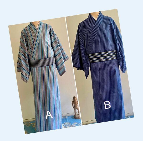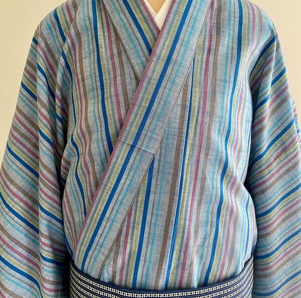 【カラフル縞木綿男性着物】