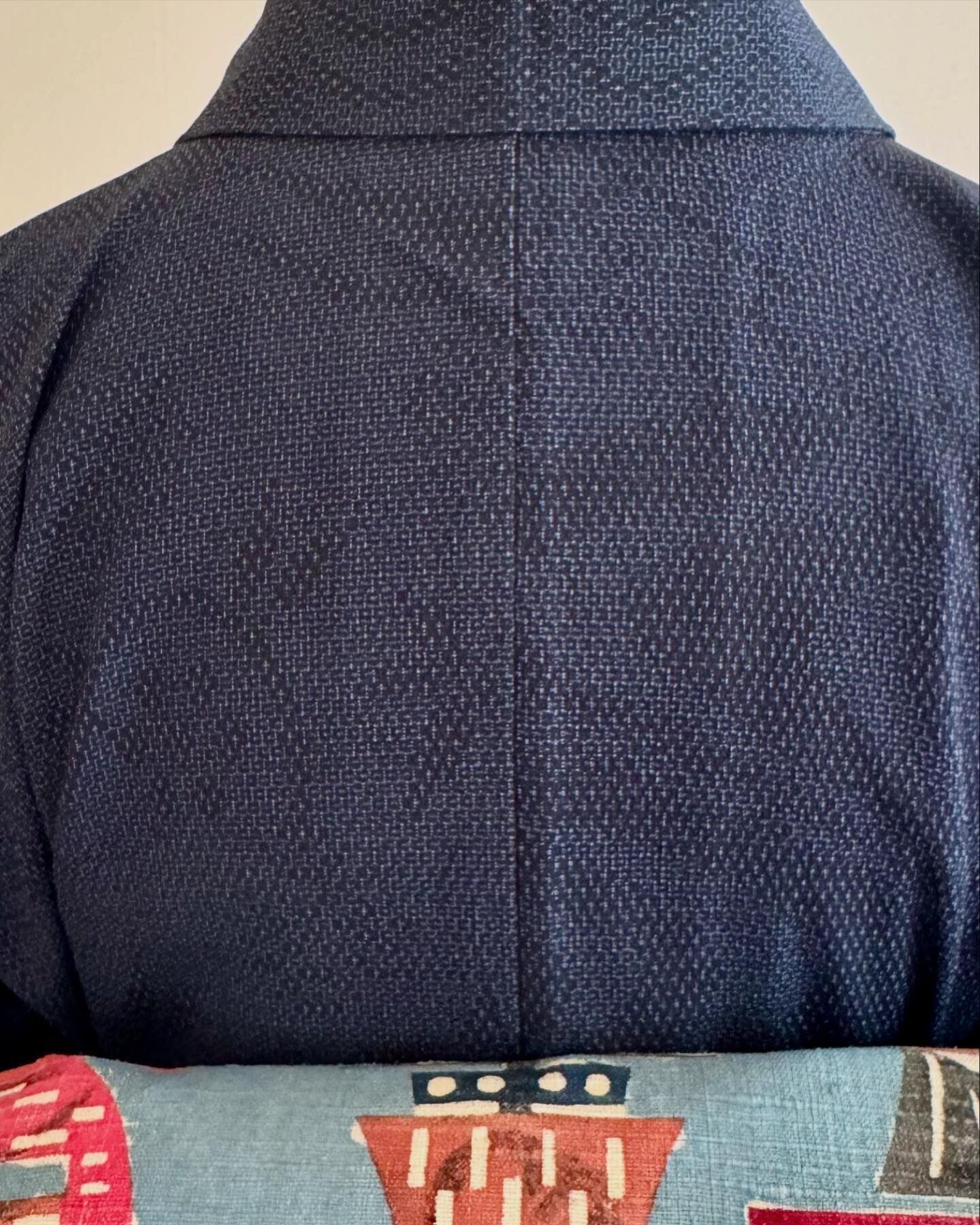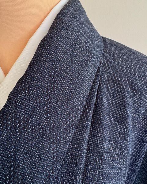 濃紺色の単衣本塩沢着物が入荷しましたのでご紹介します。